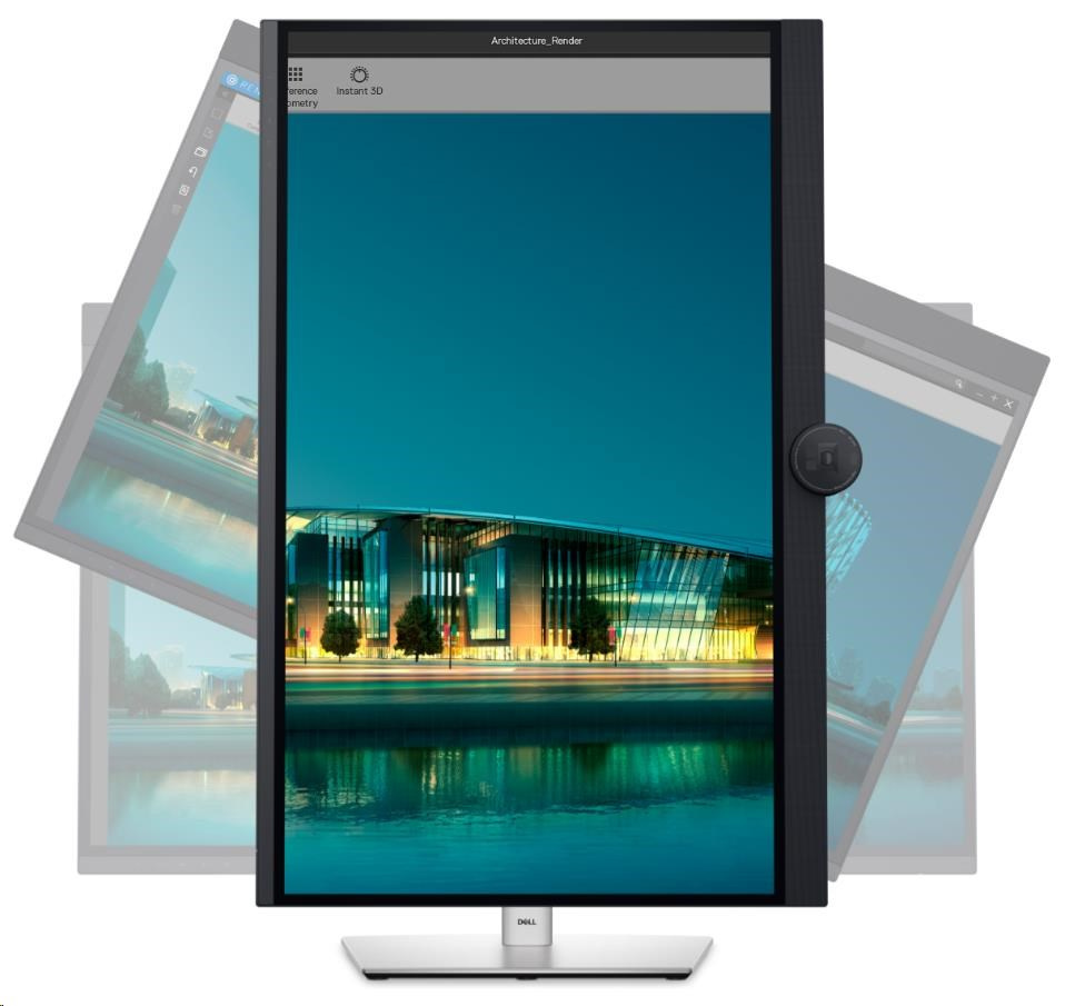 | Display Position Adjustments: Height, pivot (rotation), swivel, tilt, Tilt Angle: -5/+21, Swivel Angle: 60, Rotation Angle: 180, Height Adjustment: 160 mm, VESA Mounting Interface: 100 x 100 mm - Rotácia na výšku |