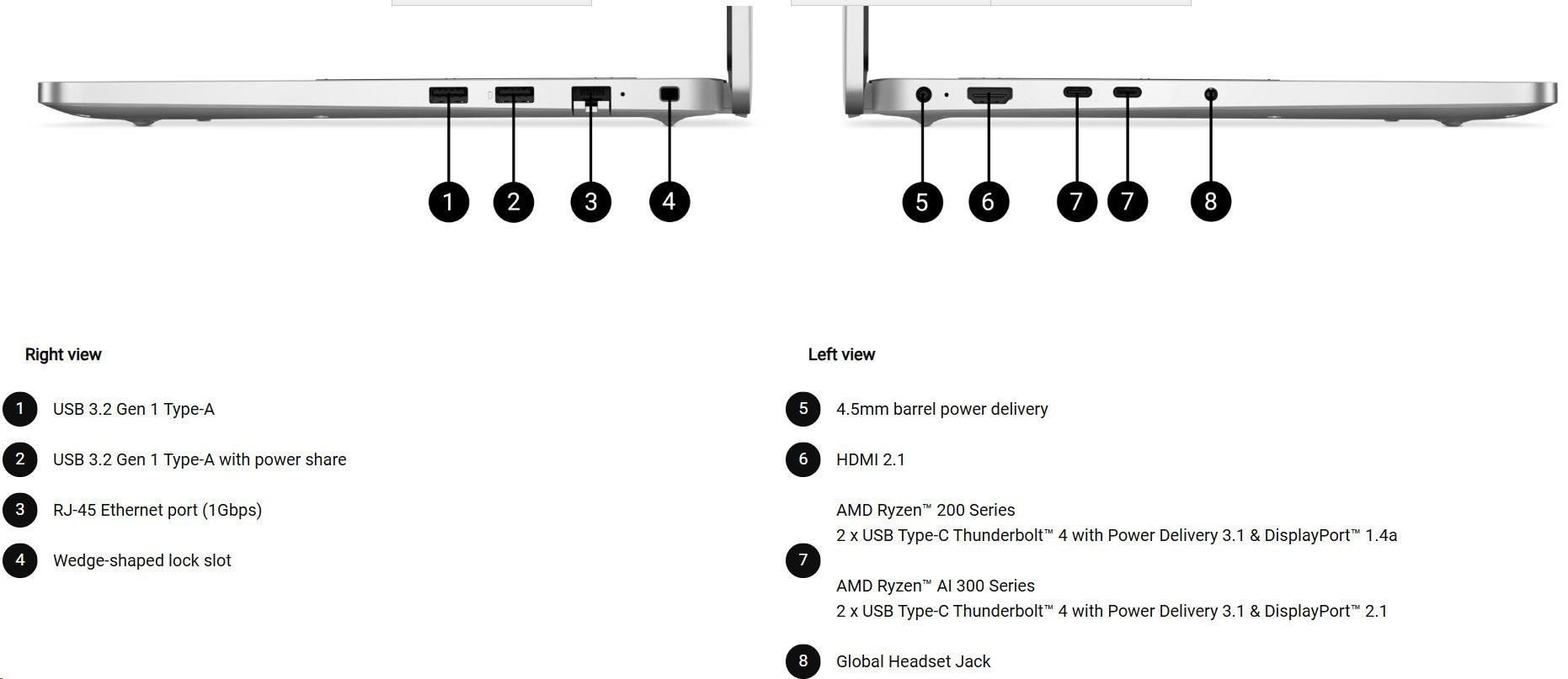 • AMD Ryzen™ 200 Series 2 x USB Type-C Thunderbolt™ 4 with Power Delivery 3.1 & DisplayPort™ 1.4a AMD Ryzen™ AI 300 Series 2 x USB Type-C Thunderbolt™ 4 with Power Delivery 3.1 & DisplayPort™ 2.1