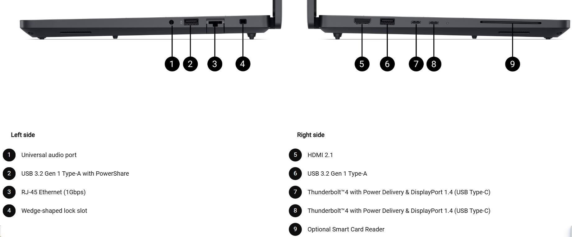 | 4 cell, 72Whr, ExpressCharge™ Capable, standard battery, 130W AC adapter, USB Type C |