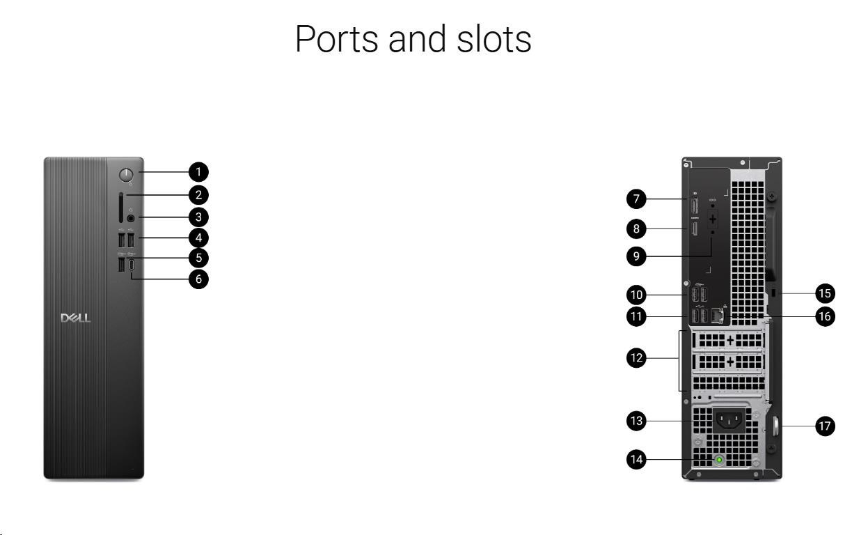 Popis DELL PC Slim ECS1250/180W/i3-14100/8GB/512GB SSD/Intel UHD/WLAN/Kb/Mouse/W11 Pro/3Y PS NBD