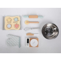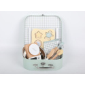 Detská sada na pečenie uložená v praktickom kufríku umožní deťom piecť perníčky a sušienky kdekoľvek sa im zachce - v kuchyni, v detskej izbe, detskej kuchynke, v záhradnom domčeku a pokojne aj na návšteve u kamaráta alebo babičky, bezpečným detským spôsobom. Obsahuje všetko potrebné na upečenie lahodnej svačinky, kuchynskú váhu, nádobie, náčinie, cesto aj rukavicu. Kufrík umožní deťom celú sadu rýchlo upratať aj preniesť.