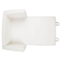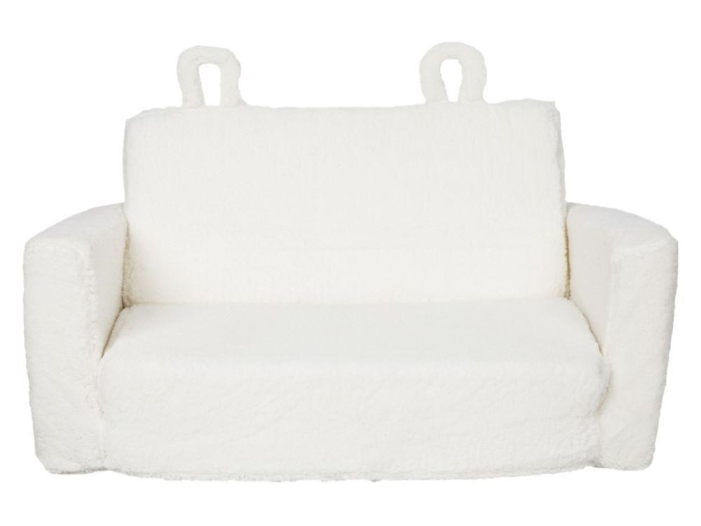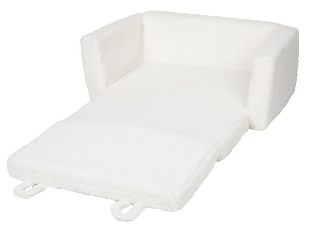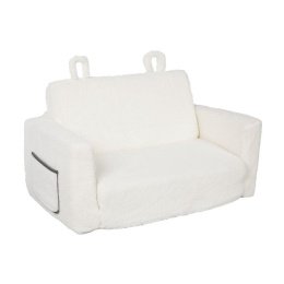Dvojmiestne detské kreslo (pohovka) s hebkým béžovým poťahom poskytne deťom pohodlie pri hre aj oddychu. Veľké detské kreslo je rozkladacie a ľahko ho z pohovky premeníte na lehátko (matrac). Do praktickej bočnej kapsy si deti môžu uložiť obľúbenú knihu, časopis alebo drobné hračky. Roztomilé ouška uľahčujú manipuláciu a kreslu dávajú podobu veľkého medvedíka. Poťah možno z detského kresla odobrať.