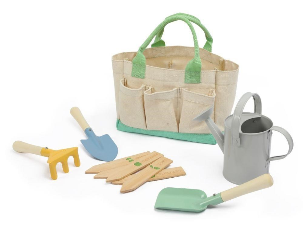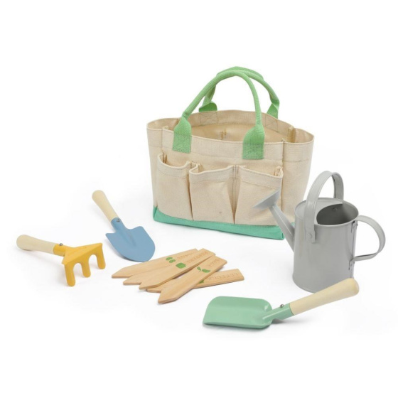 Sada detského záhradného náradia premení každé dieťa na malého záhradníka. S detským náradím vám bude vaša dievčatko alebo chlapec ochotne pomáhať na záhrade, vykopávať díry rýčom, odhadzovať hlínu lopatkou a potom všetko pekne upratať hrabľami. Súčasťou sady sú aj drevené tabuľky a samozrejme konev na zalievanie, bez vody by nič nevyrástlo. Plátená taška uľahčí upratovanie aj prenášanie záhradníckej sady.