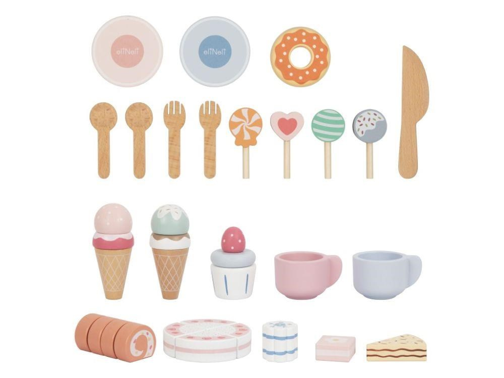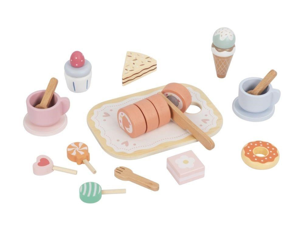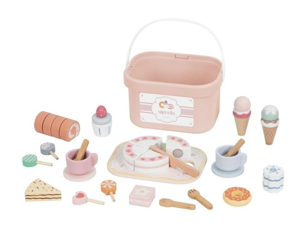 Čajový servis spolu s krájecím dortom a ďalšími chutne vyzerajúcimi dobrôtkami, všetko uložené v praktickom boxe, poteší každé dieťa. S boxom 3v1 je usporiadanie čajového dýchánku alebo posedenia pri káve hračkou a veľkou zábavou. Obsah boxu je skvelým doplnkom k detskej kuchynke alebo obchodíku.
