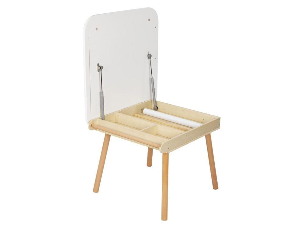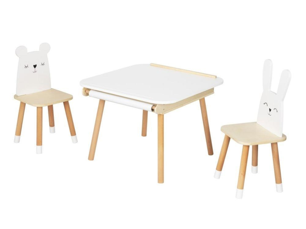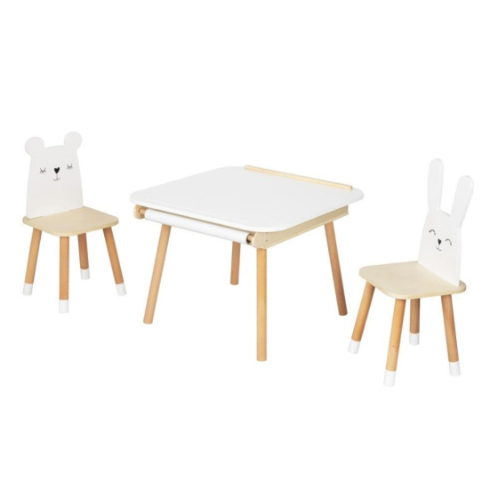 Detský rastúci set nábytku, rastúci stôl s rastúcimi stoličkami, je krásnym doplnkom do detskej izby, ktorý porastie s vaším dieťaťom. Celý set detského nábytku môže vyrásť o 5 alebo 10 cm. Pod doskou stolu sa ukrýva praktický úložný priestor, súčasťou je držák na rolu papiera aj magnetický držák priamo na doske stolu. Vďaka neutrálnym farbám je detský stolček s stoličkami vhodný pre dievčatká aj chlapcov, do každého interiéru.