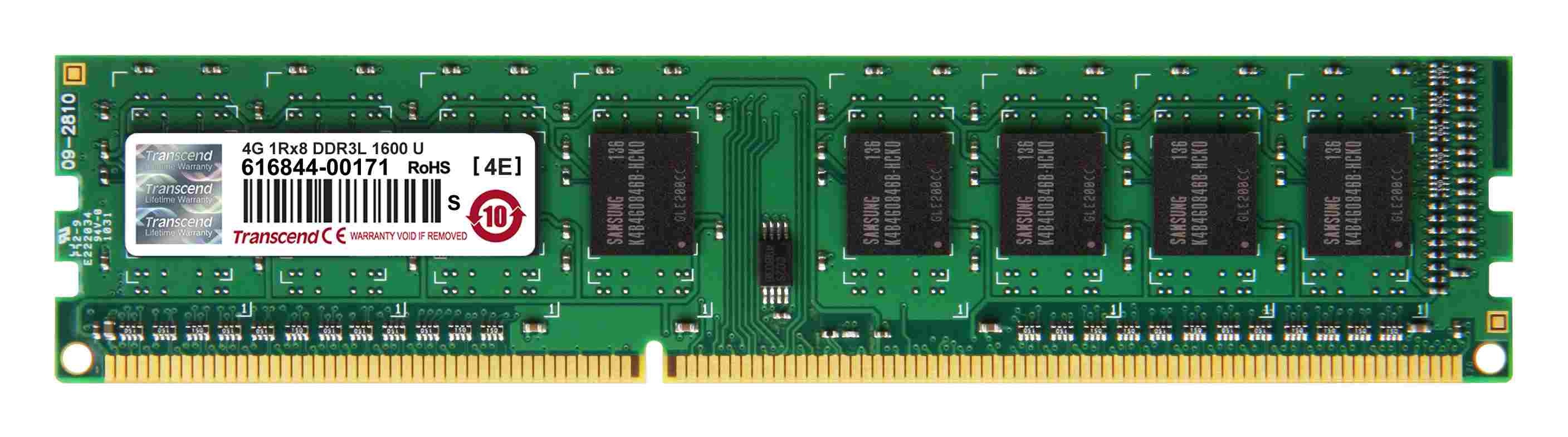 Pamäťové moduly Transcend sú vyrobené podľa prísnych špecifikácií z najlepších dostupných čipov a materiálov a prechádzajú náročným laboratórnym testovaním, aby sa zabezpečil najlepší možný výkon. Nízkonapäťové moduly DIMM Transcend DDR3 pracujú pri nominálnom napätí len 1.35 V, čo nielenže produkuje menej tepla, ale tiež znižuje elektrické zaťaženie pamäťového radiča a ponúka až 15 % úsporu energie v porovnaní so štandardným 1.5V.