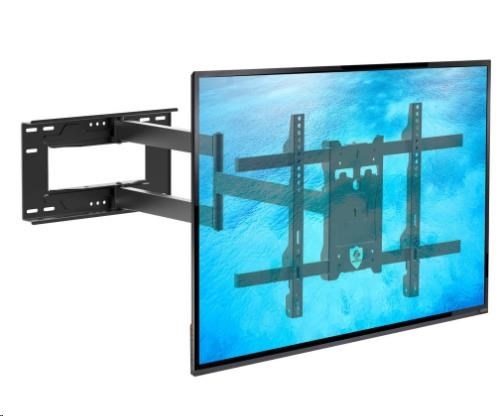 Dlhý otočný držiak na televíziu Ergosolid ONYX-20 Vynikajúci držiak s dĺžkou 80-915mm a možnosťou otočiť TV 70" kolmo na stenu na obe strany Kvalitný nástenný držiak na zavesenie televízorov s uhlopriečkou 43" až 75", televízory s uhlopriečkou do 70" je možné na držiaku otáčať kolmo na stenu na obe strany. Konštrukcia držiaku je oceľová a zabezpečí bezpečné a spoľahlivé zavésenie televízorov, ktoré majú hmotnosť až 45kg. Televíziu je možné nielen otáčať do strán, ale aj naklápať nahor alebo nadol a meniť vzdialenosť od steny. V prípade nepresnej inštalácie alebo nerovností držiak umožňuje korekciu až +/- 5°. Podporuje VESA štandardy 200x100 až 600x400. Farebné prevedenie čierne, záruka 3 roky. Extra dlhý držiak na TV na otáčanie TV až 70" kolmo na stenu - ergosolid onyx20 Technické údaje: nosnosť 45kg VESA štandardy 200x100 až 600x400 na televízie 43" až 75" otáčanie TV do strán +/- 90° TV s uhlopriečkou do 70" je možné otočiť aj kolmo na stenu na obe strany vzdialenosť TV od steny 80-915mm sklon +5° / -10° korekcia roviny +/- 5° kvalitná oceľová konštrukcia bezpečný a spoľahlivý držiak balenie obsahuje sadu inštalačného materiálu farba čierna záruka 3 roky