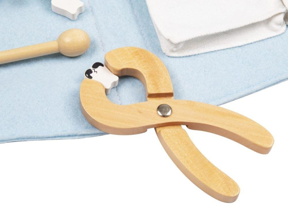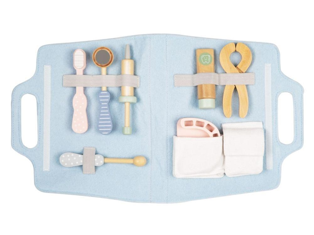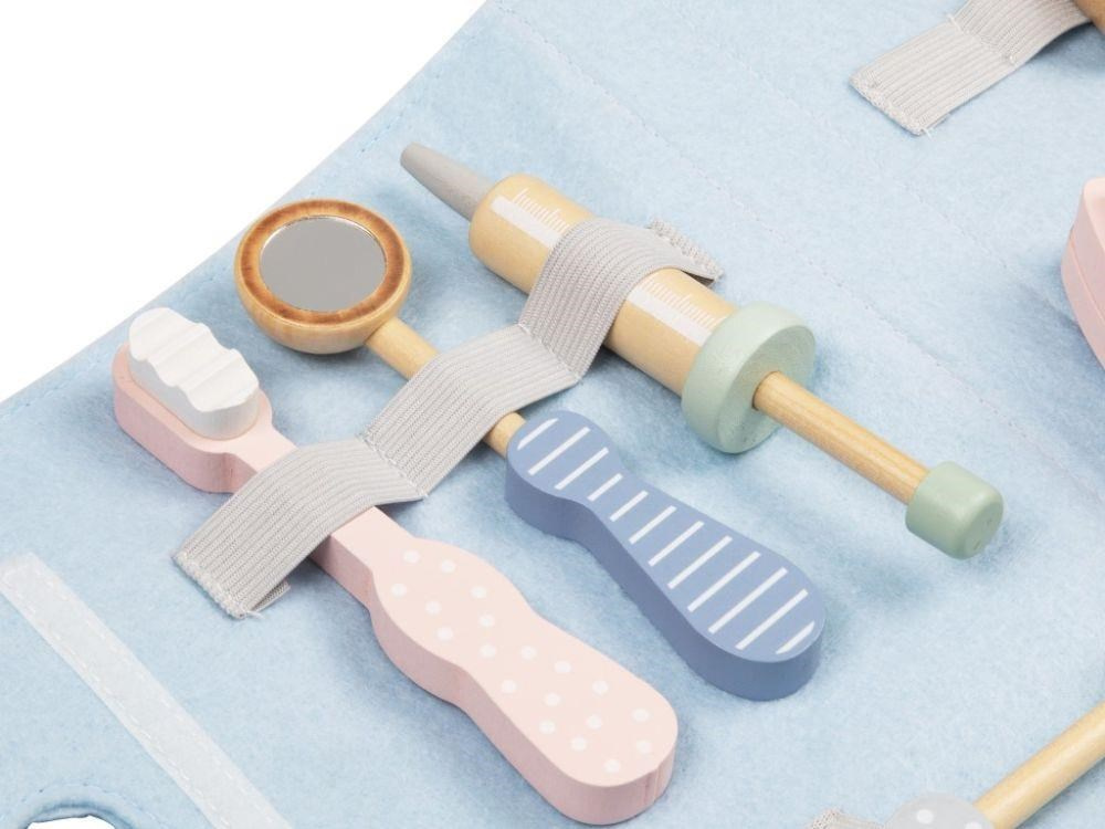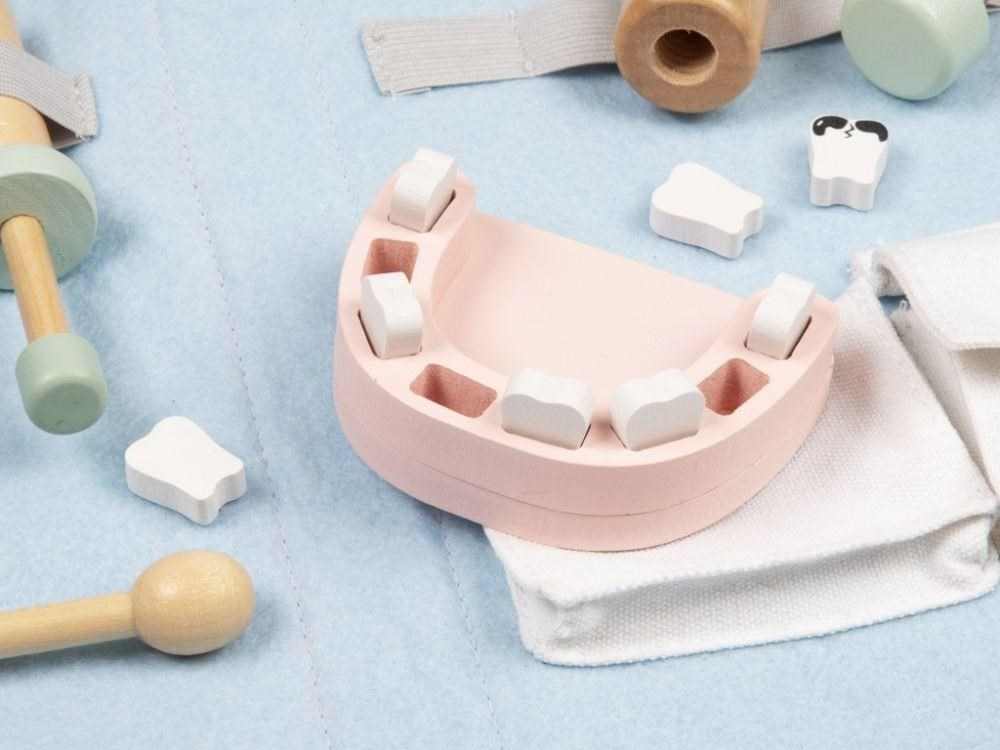 Doktorský kufr (brašna) pre deti s vybavením pre malých zubárov je originálnou hračkou, s ktorou sa deti zoznámia nielen so svojimi zubami, ale aj s tým, čo obnáša profesia zubára. V úlohe zubára alebo zubárky si deti vyskúšajú vrtanie kazivých zubov aj ich trhanie. Na tejto hračke môžete svojim deťom predviesť, ako sa správne čistí zuby a ako to dopadne, keď sa ústna hygiena zanedbá. Pre jednoduchý upratovanie a prenášanie je súprava uložená v praktickej modrej brašne.