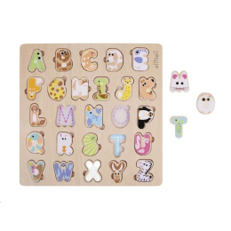 Drevená abeceda je krásnou hračkou aj vzdelávacou pomôckou, ktorá by nemala chýbať v žiadnej detskej izbičke. Abeceda 3v1 je originálne vkladané puzzle so zvieratkami, ktoré potrénuje jemnú motoriku a koordináciu očí a rúk, zároveň je učebnou pomôckou na zoznamovanie detí s písmenkami, abecedou, zvieratkami a písaním veľkých tlačených písmen. Každé z písmenok abecedy predstavuje počiatočné písmenko anglického názvu zvieratka a ukrýva pod sebou obrázok s názornou ukážkou, ako sa dané písmenko píše. Pre jednoduché vybratie písmeniek (zvieratiek) z drevenej dosky, je u každého z písmen malý otvor, ktorý je tak akurát veľký pre malé detské prstíky.