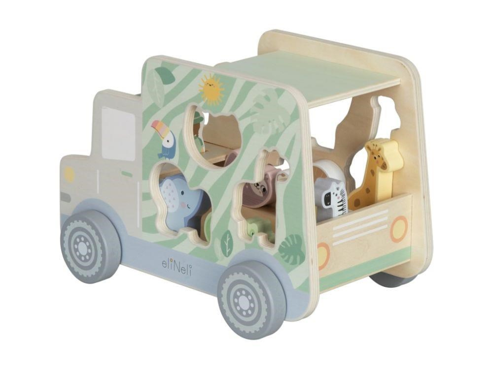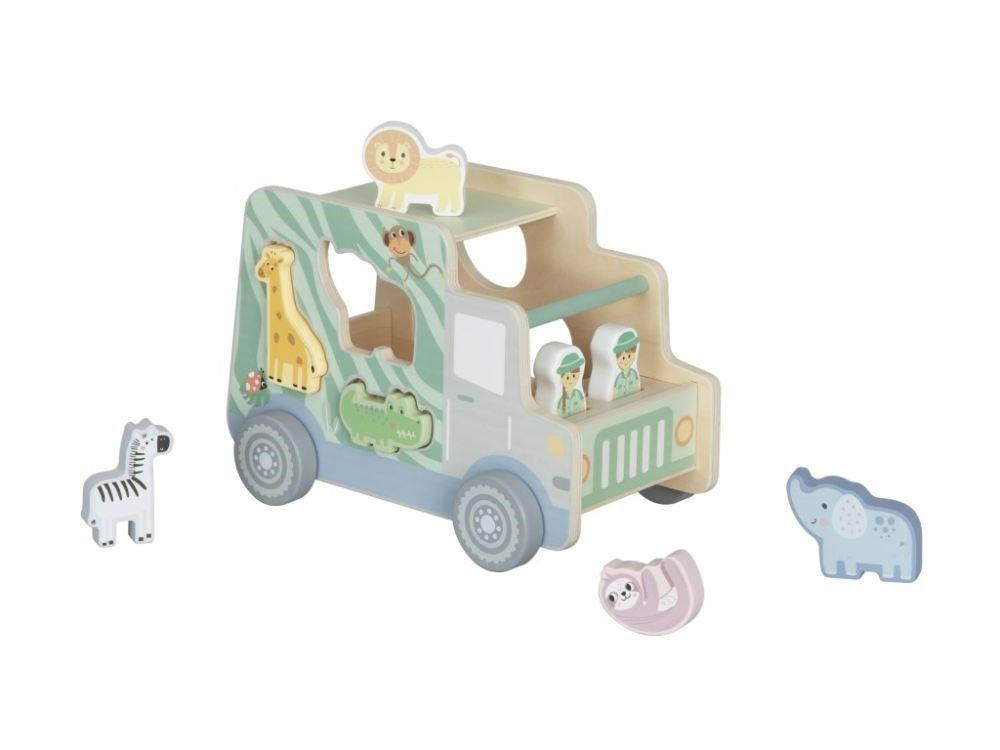 Drevené autíčko 2v1 ponúka množstvo možností na hranie. Veľké autíčko je skvelou hračkou samo o sebe, ale pretože ide o multifunkčnú detskú hračku, je zároveň aj originálnou vkladačkou s drevenými vkladacími dielikmi v podobe zvieratiek zo ZOO. Deti pri nakladaní zvieratiek a pri hre s autíčkom zdokonaľujú hrubú motoriku, koordináciu očí a rúk, logické myslenie.