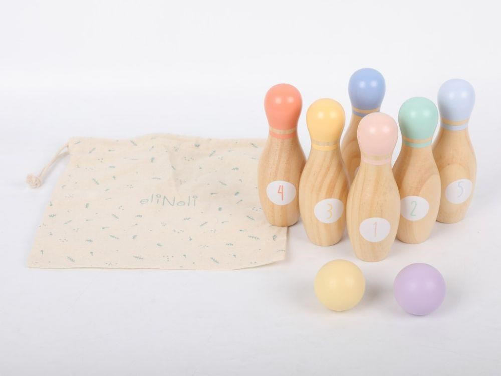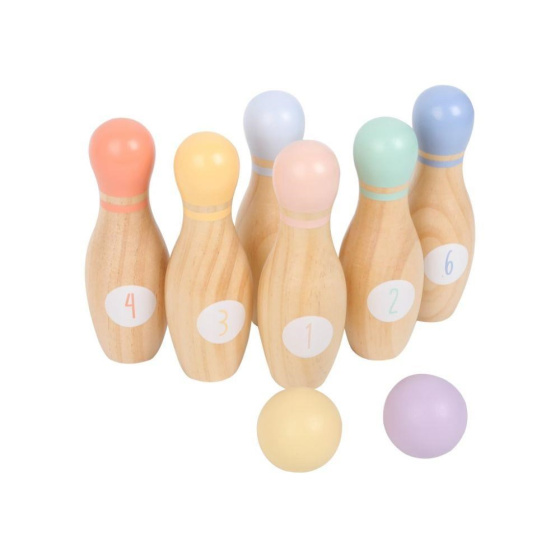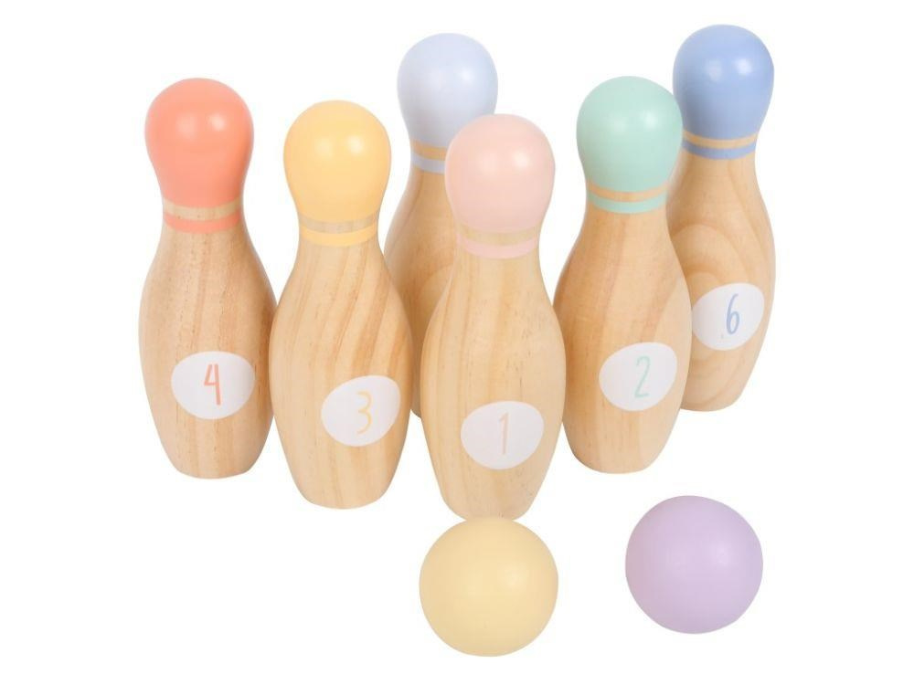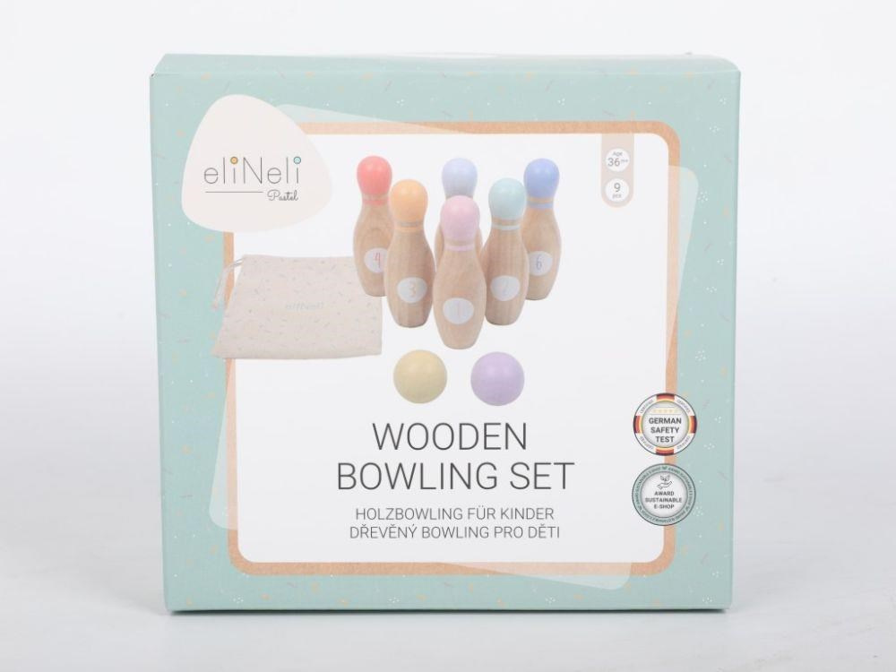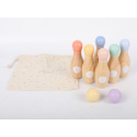 Sada drevených kuželiek s guľami umožní deťom aj celej rodine zahrať si kuželky kedykoľvek a kdekoľvek. Kužele v kombinácii prírodného dreva s pastelovými farbami sú ideálne na zoznámenie s touto hrou, na usporiadanie súťaže aj domáceho kuželkového turnaja. Stačí čistý a rovný podklad a zábava môže začať. Súčasťou balenia je praktický plátenný vrecúško, ktoré uľahčí upratovanie aj prenášanie kuželiek na záhradu, domov, na návštevu alebo na dovolenku.