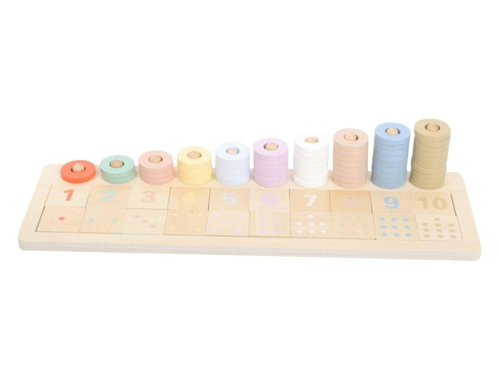 Drevené nasadzovacie počítadlo je vzdelávacou pomôckou navrhnutou v súlade s montessori princípmi. Farebné prevedenie rešpektuje farebnú paletu montessori, kvalitné prírodné materiály sú zárukou odolnosti a dlhé životnosti. Drevené počítadlo je viacúčelovou hračkou - nasadzovacou hrou, vkladačkou aj vzdelávacou pomôckou, ktorá zdokonalí motorické zručnosti, koordináciu očí a rúk, naučí deti spoznávať farbičky a počítať.