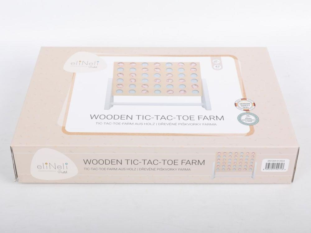 Drevené piškvorky v podobe dreveného stojanu s farebnými ilustrovanými kolieskami zavedú deti na farmu. Miesto krížikov a koliesok si vyberiete roztomilú ovečku alebo králika a hra môže začať. Hranie piškvorkov je jednoduchou hrou, ktorá zdokonalí deti zručnosti, logické a strategické myslenie, prebúdza prirodzenú detskú súťaživosť, učí deti sústrediť sa a trpezlivosti, víťaziť aj prehrať.