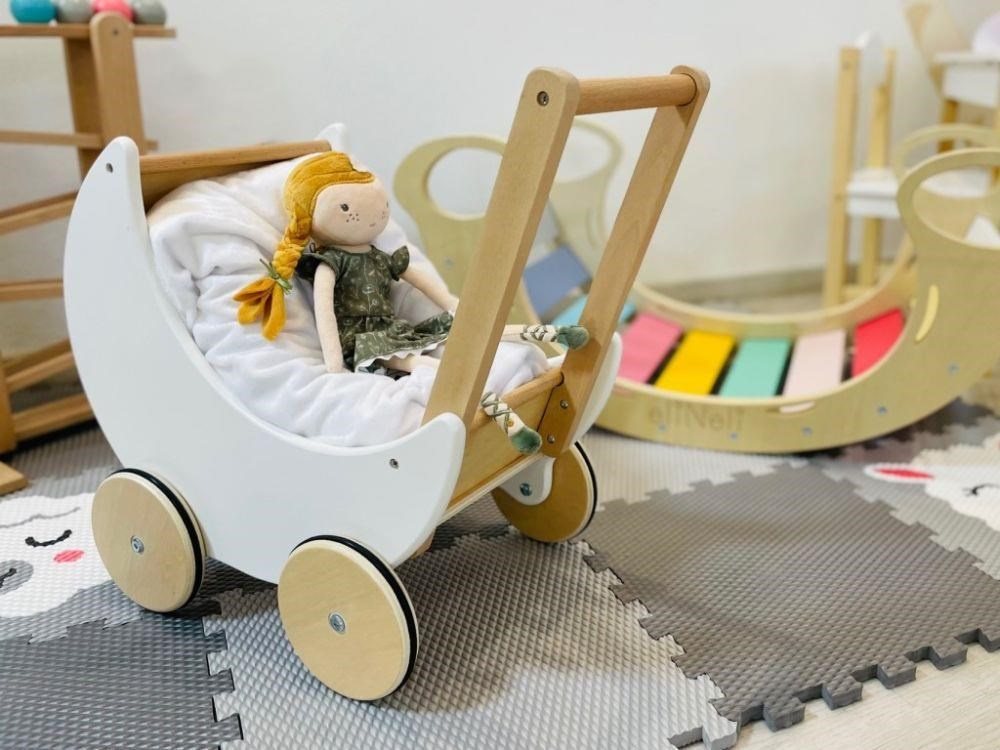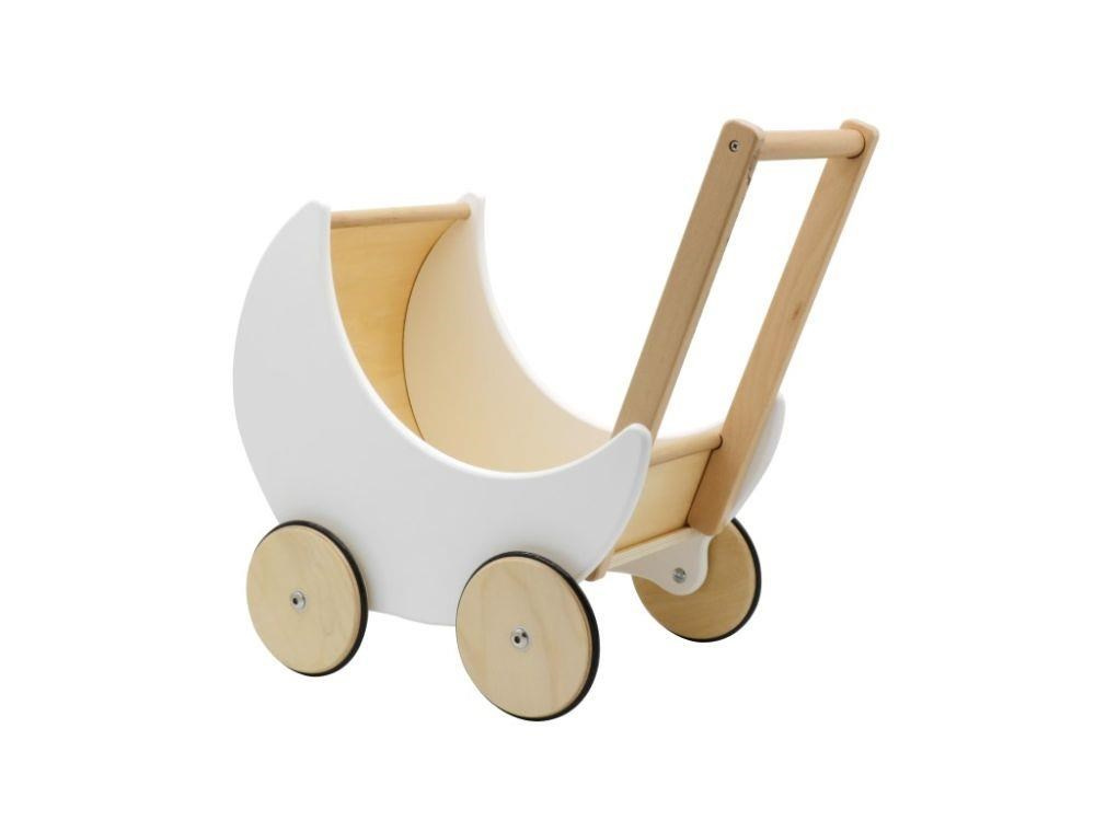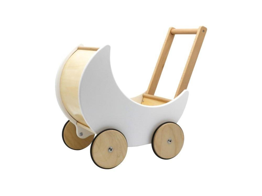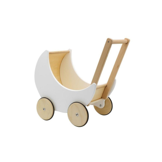 Designový kočárek ve tvaru mesiačika, vyrobený z prírodného dreva, je ako stvorený pre krátke aj dlhé prechádzky, uspávanie obľúbených bábik alebo plyšákov. Drevený kočík dobre padne do detskej ruky, ľahko sa riadi a ovláda. Kočík pre bábiky zaparkovaný v detskom kráľovstve vašej princeznej je súčasne aj krásnou dekoráciou.
