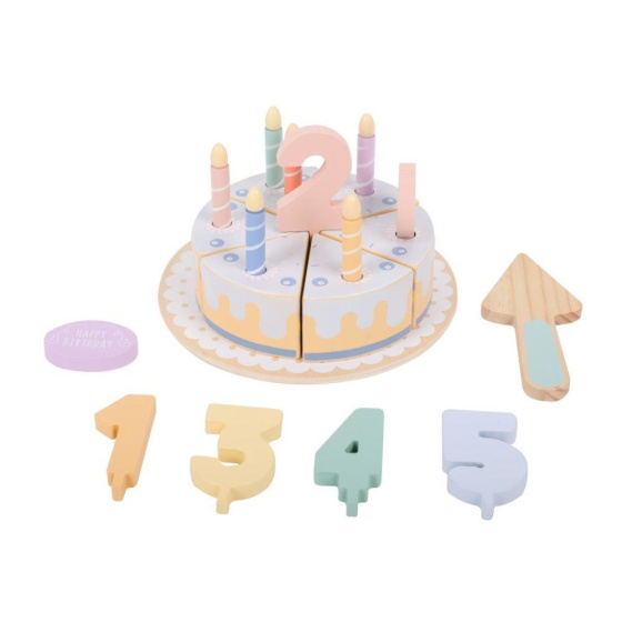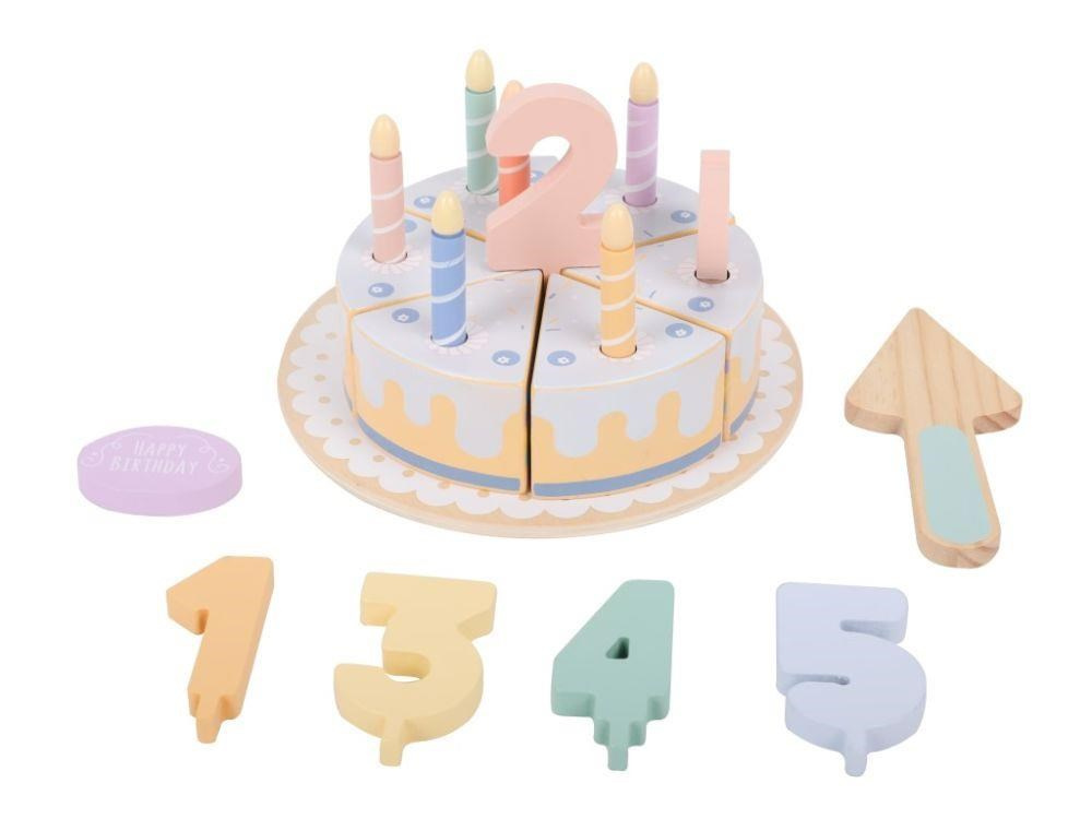 Drevený narodeninový tort so sviečkami a číslami umožní deťom sláviť narodeniny pokojne každý deň. Drevená hračka v podobe krájacieho tortu je skvelým doplnkom do detskej kuchynky aj obchodu. S dreveným tortom bude pripraviť narodeninovú oslavu pre oblúbeného plyšáka hračkou aj veľkou zábavou. Tortu môžu deti porcovať a touto dobrotou pohostiť všetkých účastníkov hostiny, predávať ju v detskom obchode, cukrárni alebo kaviarni.