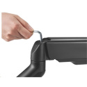 Vďaka odolnej oceľovej konštrukcii poskytuje stabilnú podporu pre dva monitory s uhlopriečkou 17" až 32" a hmotnosťou až 9 kg na rameno. Flexibilná konštrukcia umožňuje dostatočné nastavenie výšky a pozorovacích uhlov s možnosťou nastavenia orientácie monitora na výšku alebo na šírku.