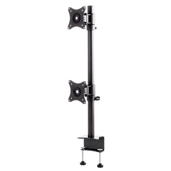 Profesionálny stolný držiak na 2 monitory EDBAK SV08 Profesionálny stolný držiak na zavedenie 2 monitorov 15-30" vertikálne, otočný, sklopný, výškovo nastaviteľný, farba čierna, VESA 75x75 a 100x100, nosnosť 20kg Profesionálny stolný držiak na nezávislé zavedenie monitorov alebo menších televízorov pod seba. Držiak umožňuje nezávislé nastavenie každého monitora - nastavenie výšky, náklonu a otočenia do strán. Dodávame vrátane 2 typov upevnenia na stolovú dosku (viď. obr. nižšie), farebné prevedenie čierne. Držiak je vyrobený z kvalitnej silnostennej ocele a neobsahuje žiadne plastové nosné prvky. Vďaka profesionálnej konštrukcii a výbornej kvalite je vhodný do akéhokoľvek prevádzky, kancelárie alebo pracovne. Stolný držiak do kancelárie na zavedenie 2 monitorov pod sebou - EDBAK SV08 Technické údaje: celkové maximálne zaťaženie 20kg maximálna hmotnosť každej obrazovky 10kg podpora VESA štandardu 75x75 a 100x100 odporúčame na monitory a obrazovky s uhlopriečkou 15" až 30" nezávislé výškové nastavenie každej obrazovky nezávislé otočenie do strán každej obrazovky nezávislé nastavenie sklonu každej obrazovky robustná oceľová konštrukcia bez nosných plastových častí funkcia pivot - možnosť otáčania obrazovky na výšku vhodný do akejkoľvek prevádzky dodávame vrátane 2 typov stolového upevnenia (viď. obr. nižšie) certifikát TUV GS farba čierna záruka 10 rokov Stolný držiak na 2 monitory alebo TV Edbak SV08 Držiaky na 2 monitory Edbak SV08 podporujú VESA štandardy: VESA 75x75 VESA 100x100