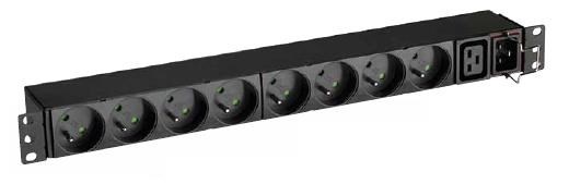 Vstup 1 konektor IEC C20 (16 A) a 2 káble (1 kábel IEC 16 A - 16 A a 1 kábel IEC 10 A - 16 A) na pripojenie k ľubovoľnej UPS Výstup 8 francúzskych zásuviek + 1 zásuvka IEC 16 A..