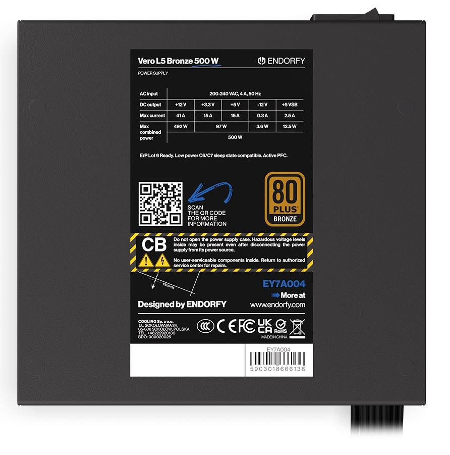 Popis ENDORFY Zdroj Vero L5 Bronze 500W, 120mm, 80 Plus Bronze