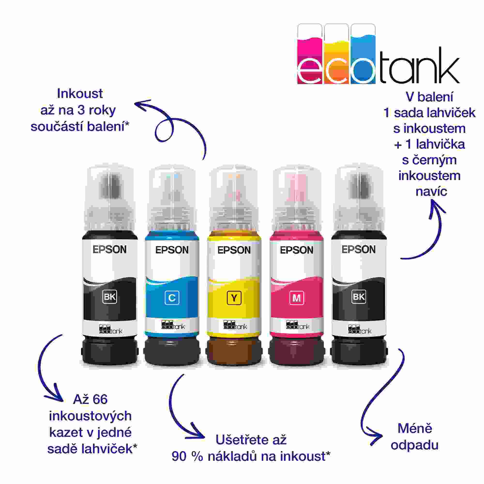 Tlačové technológie:Atramentový tankový systém; Maximálny formát tlače/média:A4; Skutočné rozlíšenie tlačiarne (v DPI):1440x5760; Rozhranie tlačiarne:USB, Wi-Fi; Maximálna rýchlosť tlače (A4 za minútu):33; Štandardný počet vstupných zásobníkov:1; Maximálny počet vstupných zásobníkov:1; Funkcie:Farebná tlač, Tlač bez okrajov, Oddelené náplne.prečítajte si viac
