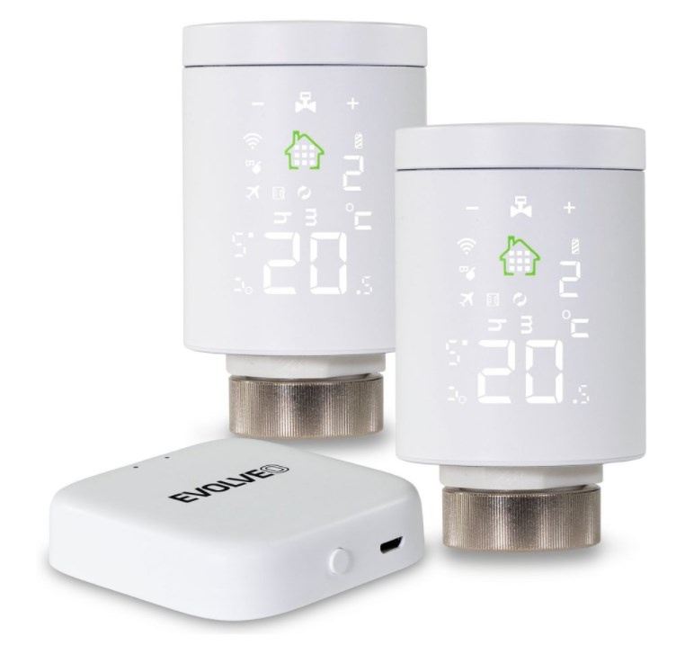 Chytrá bezdrôtová termostatická hlavica na radiátor, set obsahuje dva kusy + centrálnu Wi-Fi jednotku, ovládanie cez aplikáciu Android/iOS v češtine, white paper LED displej s dotykovým ovládaním, kompatibilný s Google Assistant a Amazon Alexa, denné a týždenné plánovanie, pripojenie na závit M30 a kompatibilný s ventilmi RA, RAV, RAVL