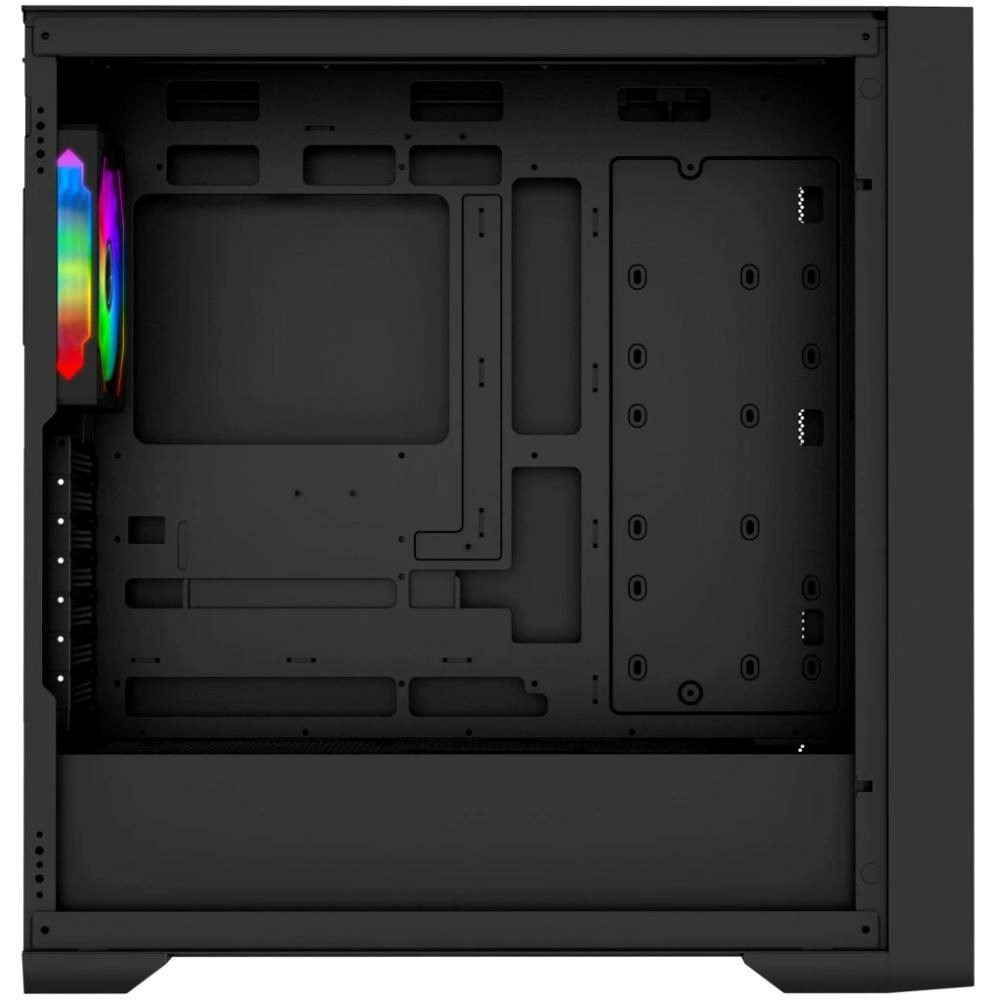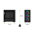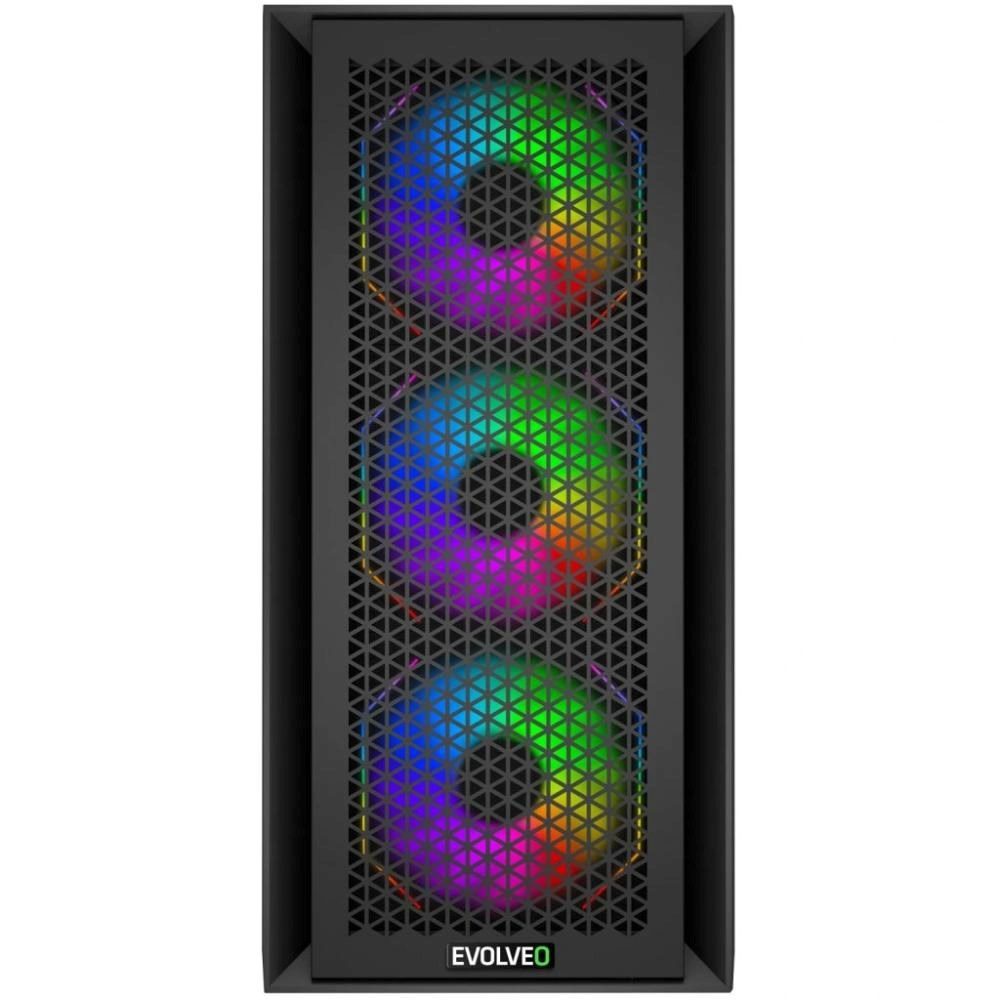 Tato PC skříň je sídlem nejen pro váš hardware, ale i pro čtveřici ventilátorů Infinity Mirror. Ty jsou strategicky rozmístěny a perfektně vyzbrojeny pro boj proti přehřívání počítače, ovšem jak je u EVOLVEO Rhino-BK-4 dobrým zvykem, dbají i na eleganci. Zdobí je Multi ARGB podsvícení s 22 LED diodami (8 uprostřed a 14 na vnějším obvodu každého ventilátoru), doplněné o působivý zrcadlový design. Díky soustavě zrcadel se světlo odráží a znásobuje, až se vám zdá, že v PC skříni svítí stovky žároviček. Jde o opravdu úchvatný efekt, který dává herní atmosféře tu pravou šťávu. Styl podsvícení ventilátorů můžete nechat na vaší základní desce nebo ho mít díky tlačítku v pravé horní části skříně ve vlastní režii. K dispozici máte 14 barevných režimů, od jednobarevného osvětlení přes decentní prolínání barev až po futuristické blikací módy.