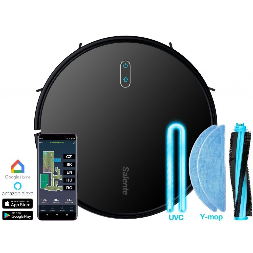 Salente G4 je schopný vysávať, vytierať a dezinfikovať podlahu pomocou vstavané UVC lampy súčasne. Pomocou SMART gyroskopickej navigácie a jednoduchou kontrolou upratovaného priestoru cez mobilnú aplikáciu v češtine dokáže ľahko, rýchlo a kvalitne upratať váš členitý byt alebo dom a po ukončení upratovania sa vrátiť späť do nabíjacej základne.