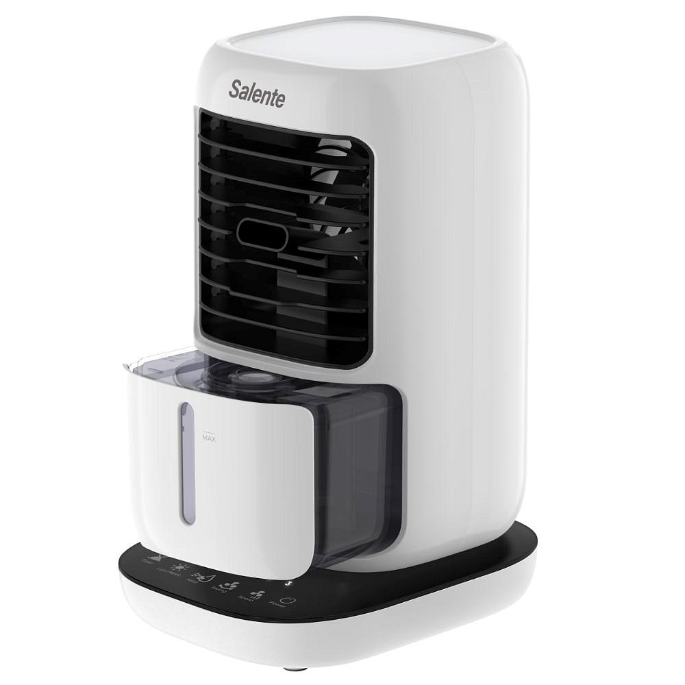 Multifunkčné zariadenie Salente IceTop plní funkciu malého stolného ochladzovača vzduchu, ktorý vám v horúcich letných dňoch alebo teplých priestoroch bez možnosti klimatizácie spríjemní prácu aj súkromie. Súčasne plní funkciu zvlhčovača a nedochádza tak pri jeho prevádzke k vysušovaniu vzduchu ako je tomu u štandardných klimatizácií. Pri prevádzke bez naplnené vodnej nádržky plní funkciu klasického stolného letného ventilátora. Na jedno naplnenie vodnej nádržky vydrží v prevádzke 6 hodín.