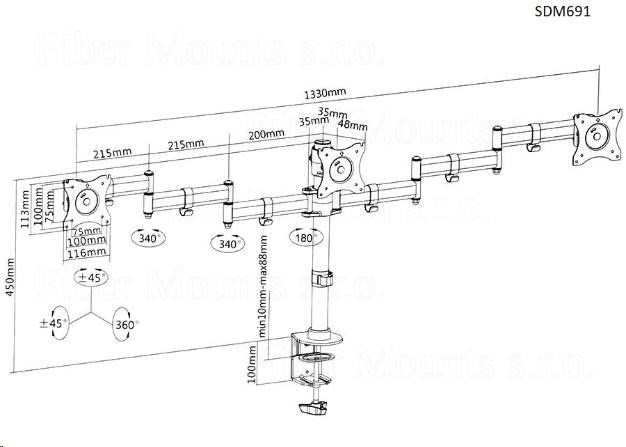 Popis Fiber Mounts SDM691 - stolní držák na 3 monitory