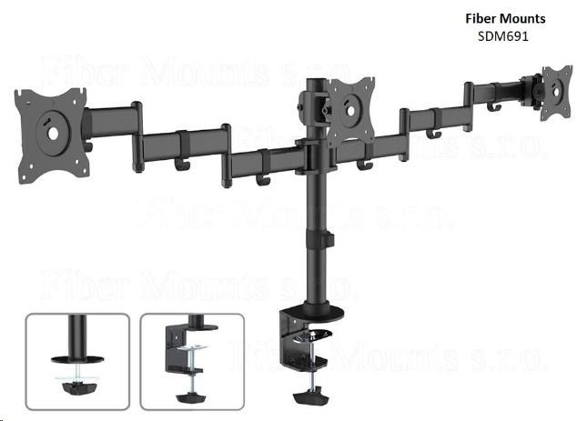 Fiber Mounts SDM691 - stolní držák na 3 monitory