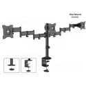 Technické údaje: celková nosnosť 24kg max. hmotnosť 1 monitoru 8kg podpora VESA štandardu 75x75 a 100x100 vhodný na umiestnenie 3 monitorov s uhlopriečkou 13-27" usporiadanie monitorov vedľa seba otáčanie do strán +/- 45° náklon +/- 45° výška držiaka 450mm nastavenie výšky monitorov polohovanie monitorov do roviny alebo do oblúku súčasť balenia 2 typy upevnenia uchytenie na stolovú dosku alebo akýkoľvek vodorovný povrch vhodný na upevnenie na stolové alebo vodorovné povrchy o hrúbke 10-88mm výborná kvalita materiál oceľ a hliník veľmi jednoduchá inštalácia farba čierna záruka 3 roky Držiak podporuje VESA štandardy: VESA 75x75 VESA 100x100