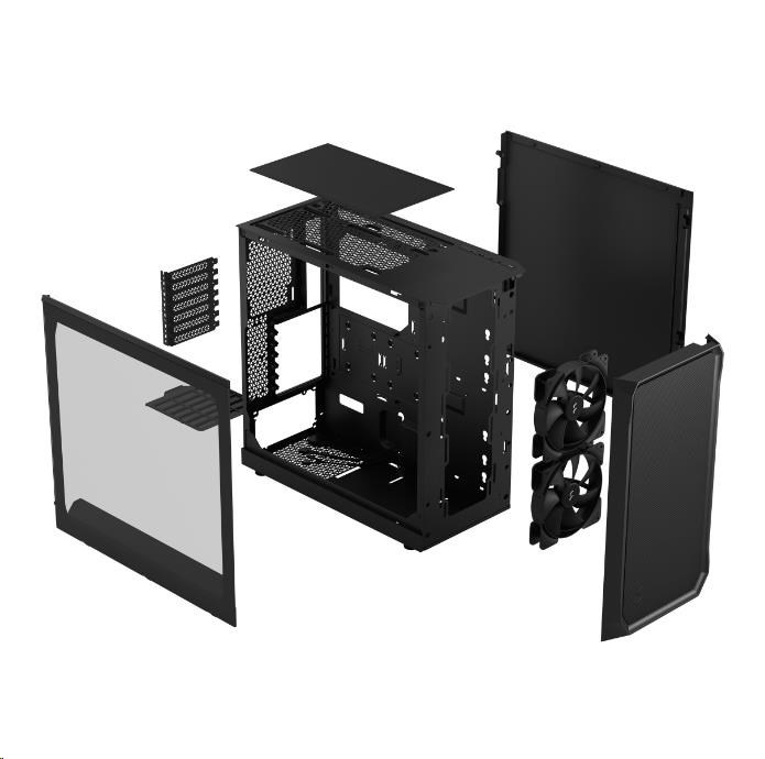 Popis FRACTAL DESIGN skříň Focus 2 Black TG Clear Tint, 2x USB 3.0, bez zdroje, mATX