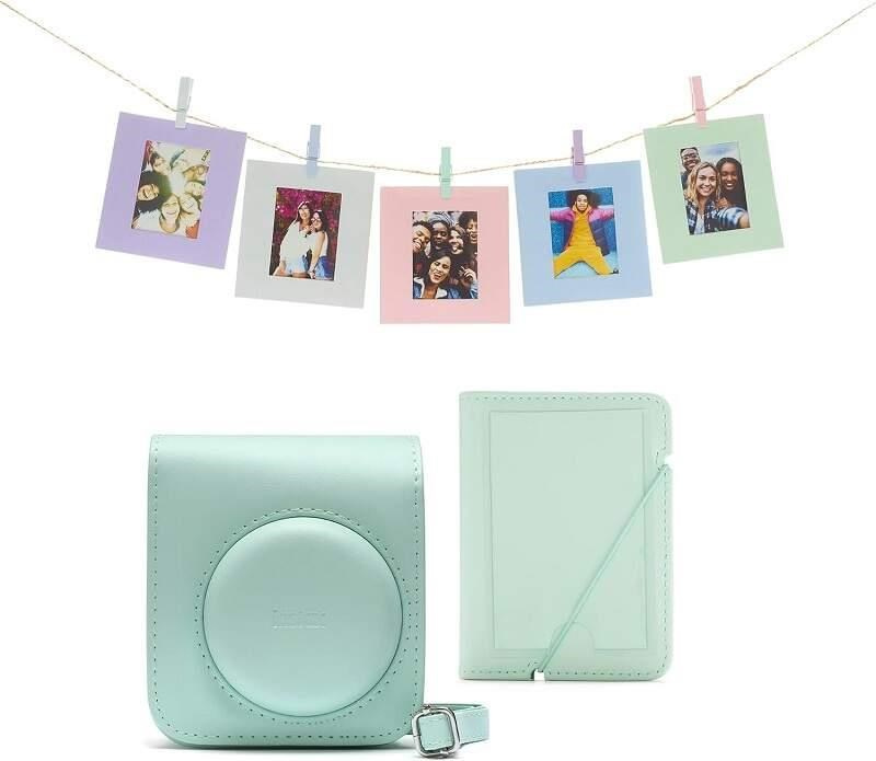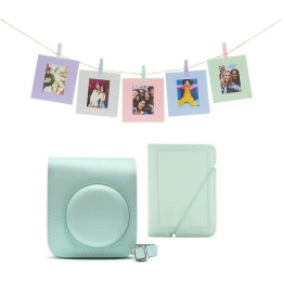 Oficiálna sada príslušenstva pre instax mini 12 obsahuje: farebne zosúladené puzdro s nastaviteľným ramenným popruhom, mini fotoalbum na 29 fotografií s krycím pásikom a sadu 10 závesných kartičiek so šnúrkou. Ideálny balíček príslušenstva farebne zosúladený s piatimi farbami fotoaparátu – Pastelovo modrá, Mäta zelená, Kvetinovo ružová, Fialová šeríková a Hlinená biela. Jedinečný doplnok pre váš fotoaparát instax mini 12.