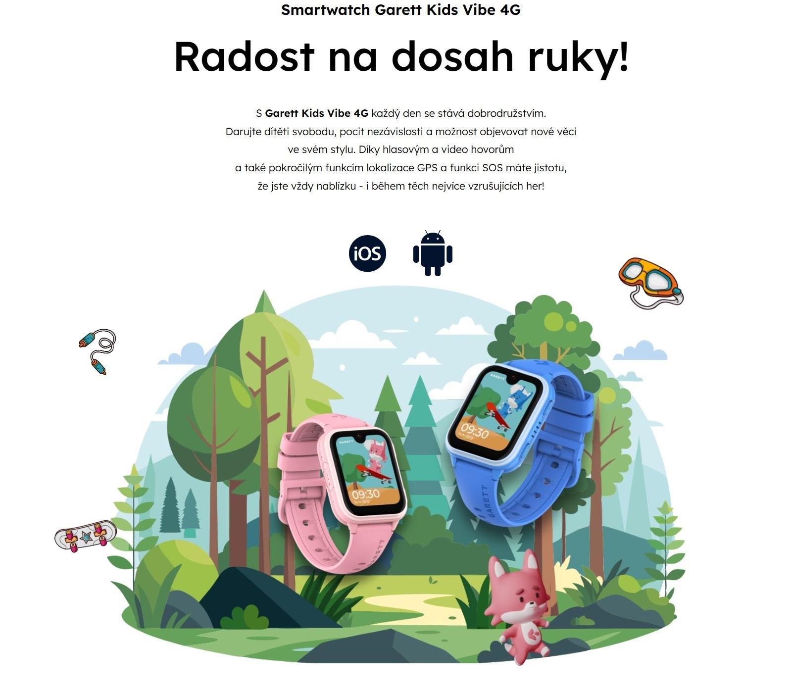 S Garett Kids Vibe 4G sa každý deň stáva dobrodružstvom. Darujte dieťaťu slobodu, pocit nezávislosti a možnosť objavovať nové veci po svojom. Vďaka hlasovým a video hovorom, ako aj pokročilým funkciám lokalizácie GPS a SOS máte istotu, že ste vždy nablízku – aj počas tých najnapínavejších hier!