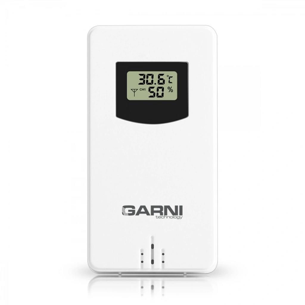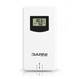 Bezdrôtové čidlo na meranie teploty a relatívnej vlhkosti, určené pre meteorologické stanice GARNI 439 Line, GARNI 545 Line vlhkosti odolné, krytie IPX4 (odolné voči kvapkajúcej vode) displej o rozmeroch 19 x 11 mm veľkosť číslic na displeji: teplota a relatívna vlhkosť 4 mm meranie teploty a relatívnej vlhkosti 3 kanály maximálny RF výkon 10 dBm (10 mW) možnosť postavenia a zavešenia farba biela