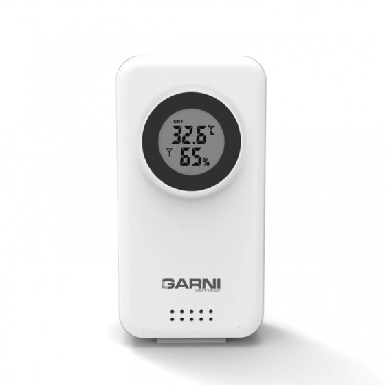 Bezdrôtové čidlo na meranie teploty a relatívnej vlhkosti, určené pre meteorologické stanice GARNI 550 EASY, GARNI 560 EASY, GARNI 560 EASY II, GARNI 570 EASY, GARNI 570 EASY II - vlhkosti odolné, krytie IP44 (odolné proti kvapkajúcej vode) - kruhový displej s priemerom 19 mm - veľkosť číslic na displeji: teplota a relatívna vlhkosť 5 mm - meranie teploty a relatívnej vlhkosti - 3 kanály - maximálny RF výkon 10 dBm (10 mW) - možnosť umiestnenia