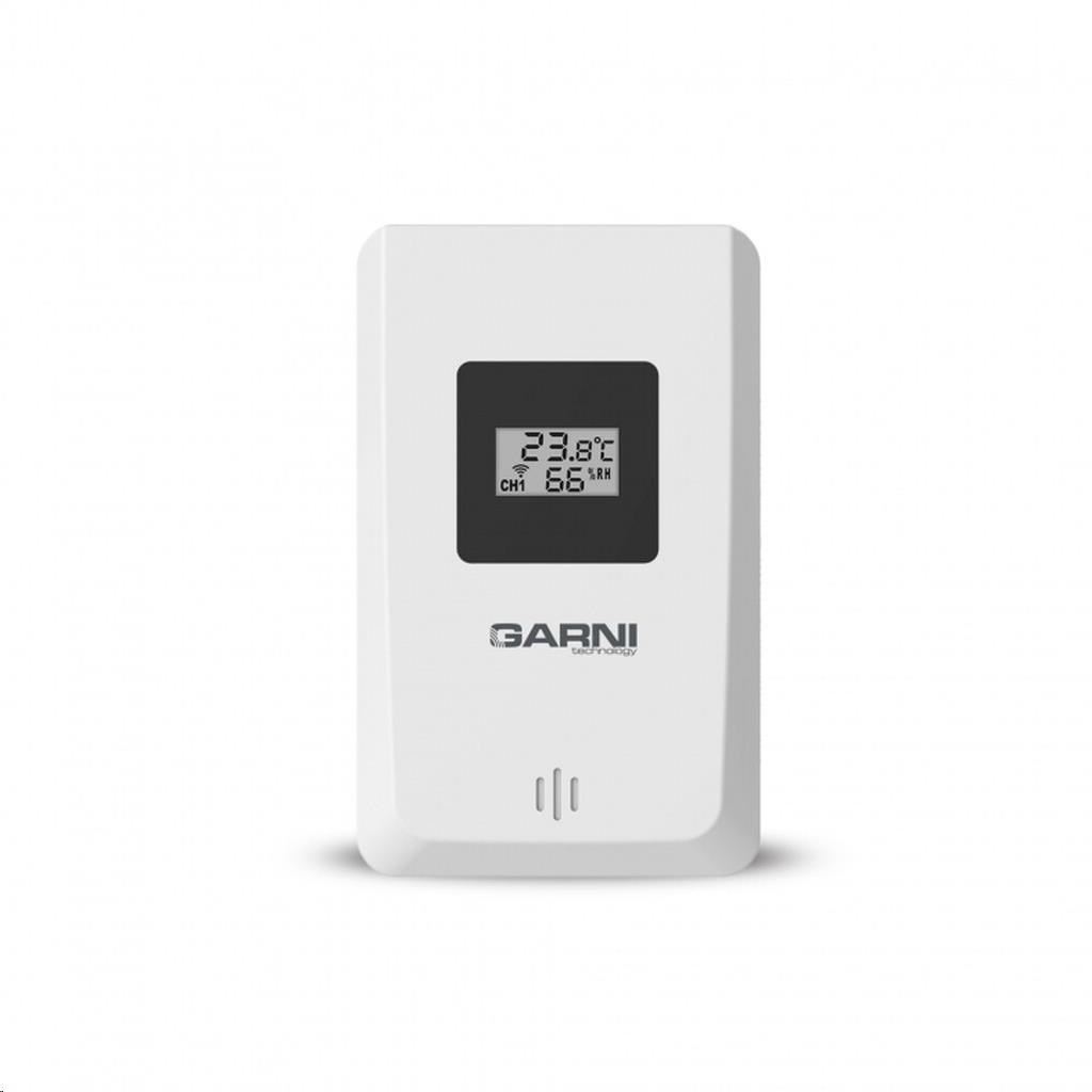Bezdrôtové čidlo na meranie teploty a relatívnej vlhkosti, určené pre meteorologickú stanicu GARNI 520 a GARNI 525 displej s rozmermi 18 x 10 mm veľkosť číslic na displeji: teplota 4 mm a relatívna vlhkosť 3,5 mm meranie teploty a relatívnej vlhkosti 3 kanály maximálny RF výkon 10 dBm (10 mW) možnosť postavenia a zavesenia farba biela
