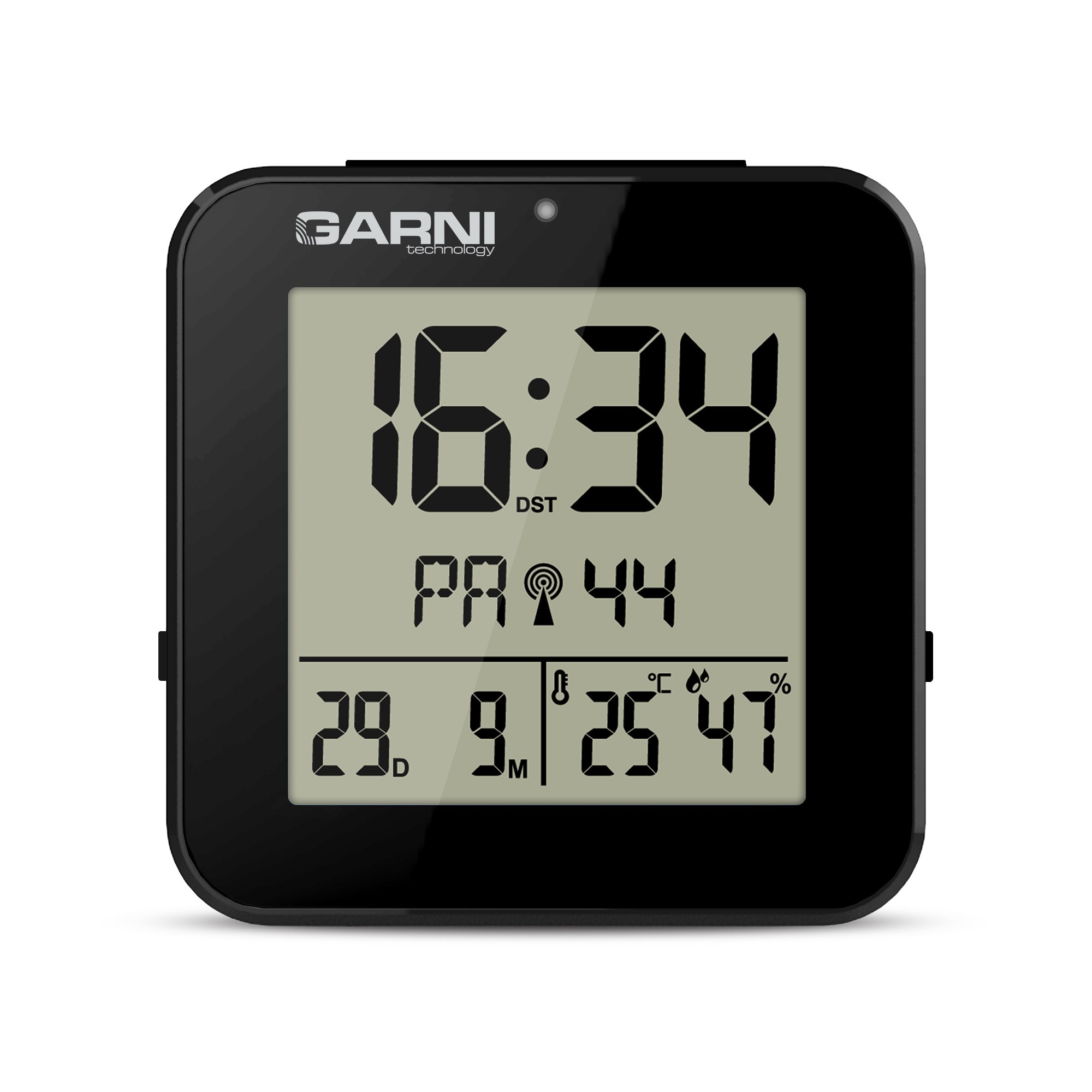 Digitálny budík s časom riadeným signálom DCF-77 s špeciálnou funkciou možnosti zapnutia automatického nočného osvetlenia displeja. Meranie vnútorné teploty a relatívnej vlhkosti.