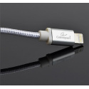 Bavlnený opletený 8-pinový kábel s kovovými konektormi, 1.8 m, strieborná farba, blister