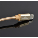 Bavlnený opletený 8-pinový kábel s kovovými konektormi, 1.8 m, zlatá farba, blister
