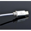 Bavlnený opletený kábel Micro-USB s kovovými konektormi, 1.8 m, strieborná farba, blister