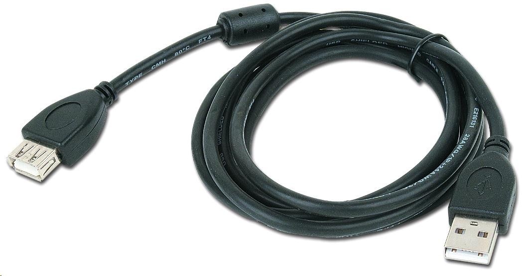 Kábel USB GEMBIRD 2.0 A-A predĺženie 1,8 m Premium (čierne, feritové, pozlátené kontakty)