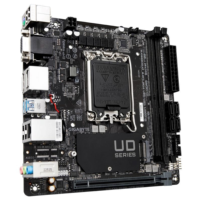 Popis GIGABYTE MB Sc LGA1700 H610I, Intel H610, 2xDDR5, 2xDP, 1xHDMI, 1xVGA, Mini-ITX