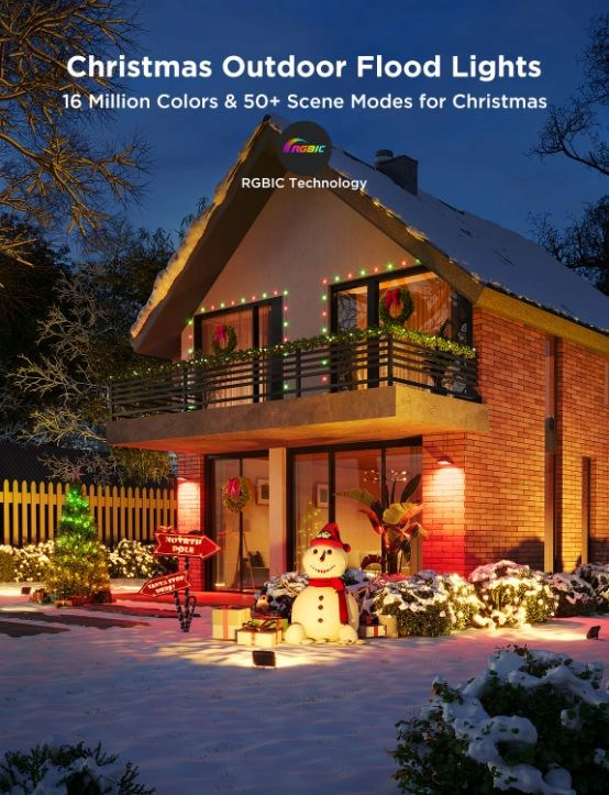 Vonkajšie energeticky úsporné LED reflektory Smart Flood Lights 2 urobia z vašej záhrady dizajnový skvost. Vďaka technológii RGBICWW dokážu svietiť svetlom s intenzitou až 1 000 lm a zobraziť až 16 miliónov farieb. Na výber máte určite viac ako 50 režimov osvetlenia a pri počúvaní obľúbenej hudby si môžete vybrať aj zo 6 režimov rytmu. Alebo si jednoducho nastavte vlastné farebné kombinácie podľa svojich predstáv na každom zo 4 svetiel LED. Príkazy môžete zadávať aj hlasom prostredníctvom Siri, Amazon Alexa alebo Google Assistant alebo prostredníctvom aplikácie Govee Home v smartfóne alebo tablete. Nové svetlá podporujú Matter, takže natívne podporujú aj Apple Homekit. Svetlo má celkovú dĺžku takmer 16 metrov a veľmi ľahko sa inštaluje. Pomocou časovača môžete svetlá automaticky zapínať a vypínať na základe západu a východu slnka. Svetlá majú stupeň vodotesnosti IP66 (okrem napájacieho adaptéra) s prevádzkovou teplotou od -20 °C do 40 °C.