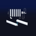 Jednotlivé časti sa spájajú jednoduchým kliknutím konektorov. Ak chcete odpojiť, stačí jemne otočiť a kliknúť. Svetlá sú pripevnené k stene pomocou 3M pások na zadnej strane svetelných panelov. Vlastný tvar si môžete zostaviť podľa svojej fantázie pomocou rovných panelov, ktoré sú potom tvarované rohovým konektorom.