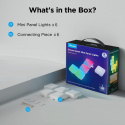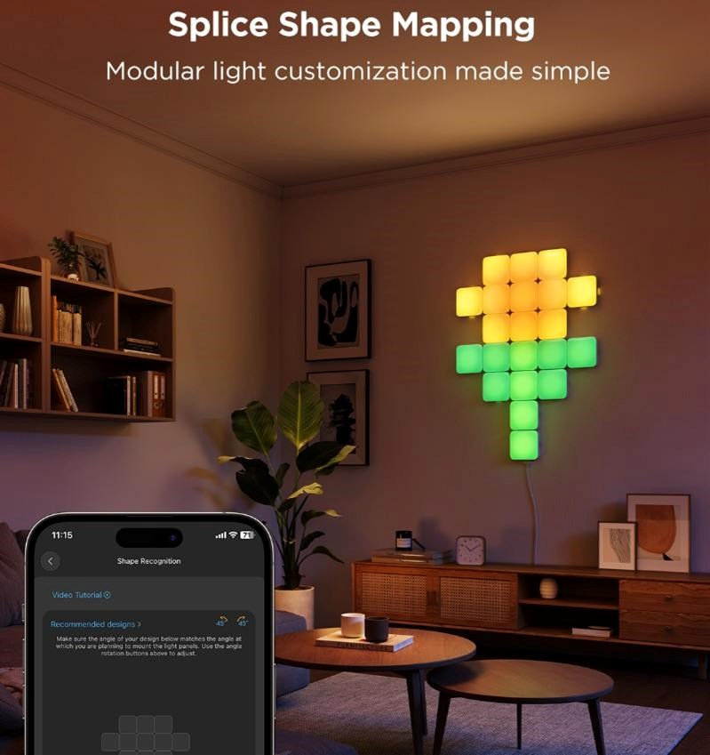 Svetlá sa dajú ľahko pripevniť pomocou predinštalovanej pásky 3M, čo znamená, že nie je potrebné žiadne vŕtanie ani komplikácie. Balenie obsahuje 6 panelov, ktoré môžete ľubovoľne kombinovať do rôznych tvarov a konfigurácií – dokonca môžete spojiť až 70 panelov naraz! Ovládanie svetiel je jednoduché vďaka šikovnej aplikácii, ktorá umožňuje výber z prednastavených scén, hudobných vizuálov a vlastných nastavení farieb.