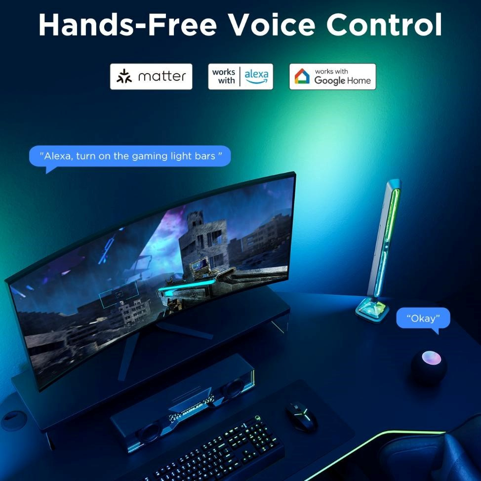 Panely boli navrhnuté s ohľadom na všestrannosť a pohodlie. Sú kompatibilné s technológiou Matter a podporujú hlasové ovládanie prostredníctvom vašich obľúbených inteligentných asistentov, takže môžete jednoducho meniť osvetlenie bez potreby zdĺhavého nastavovania. Okrem Google Home a Amazon Home sú kompatibilné aj s hernými ekosystémami, ako sú Razer Chroma a Corsair iCUE.