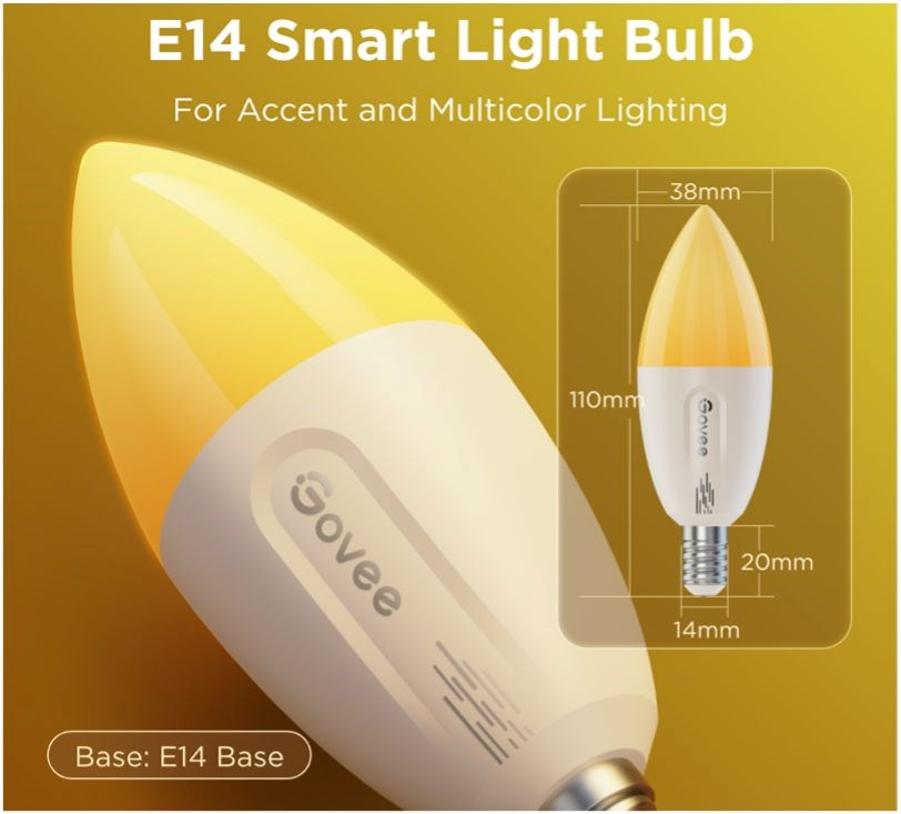 Popis Govee Smart žárovka RGBWW 5W-50W 450lm E14 Long Life 2ks Matter