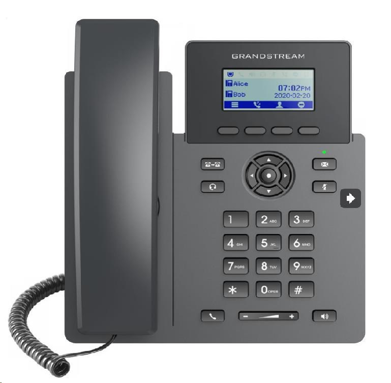Nový rad IP telefónov Grandstream GRP zahŕňa model GRP2601P. Ide o základný dvojriadkový model určený na hromadné nasadenie a jednoduchú správu. Vyznačuje sa elegantným dizajnom a súborom funkcií novej generácie vrátane 5-smernej audiokonferencie pre maximálnu produktivitu, integrovaného napájania PoE, podpory EHS pre náhlavné súpravy Plantronics, Jabra a Sennheiser, viacjazyčnej lokalizácie vrátane češtiny a slovenčiny.