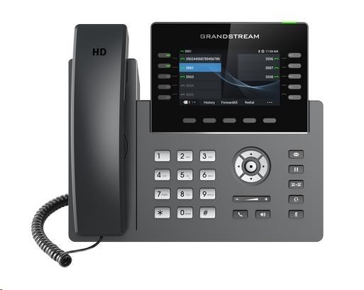GRP2615 je prémiový IP telefón s elegantným dizajnom a súborom funkcií novej generácie vrátane integrovaného Wi-Fi a Bluetooth, 40 viacúčelových tlačidiel (MPK), dvoch gigabitových portov a ďalších. Toto zariadenie je vybavené veľkým 4,3-palcovým farebným displejom LCD s vymeniteľným čelným panelom, ktorý umožňuje jednoduché prispôsobenie loga. GRP2615 možno nakonfigurovať pomocou systému Grandstream Device Management System (GDMS), ktorý poskytuje centralizované rozhranie na konfiguráciu, poskytovanie, správu a monitorovanie koncových zariadení Grandstream.